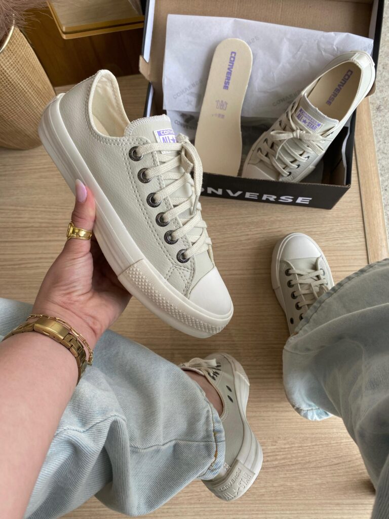 - Design Único: O Tênis All Star Premium apresenta um acabamento em renda na cor areia, proporcionando um visual charmoso e diferenciado.