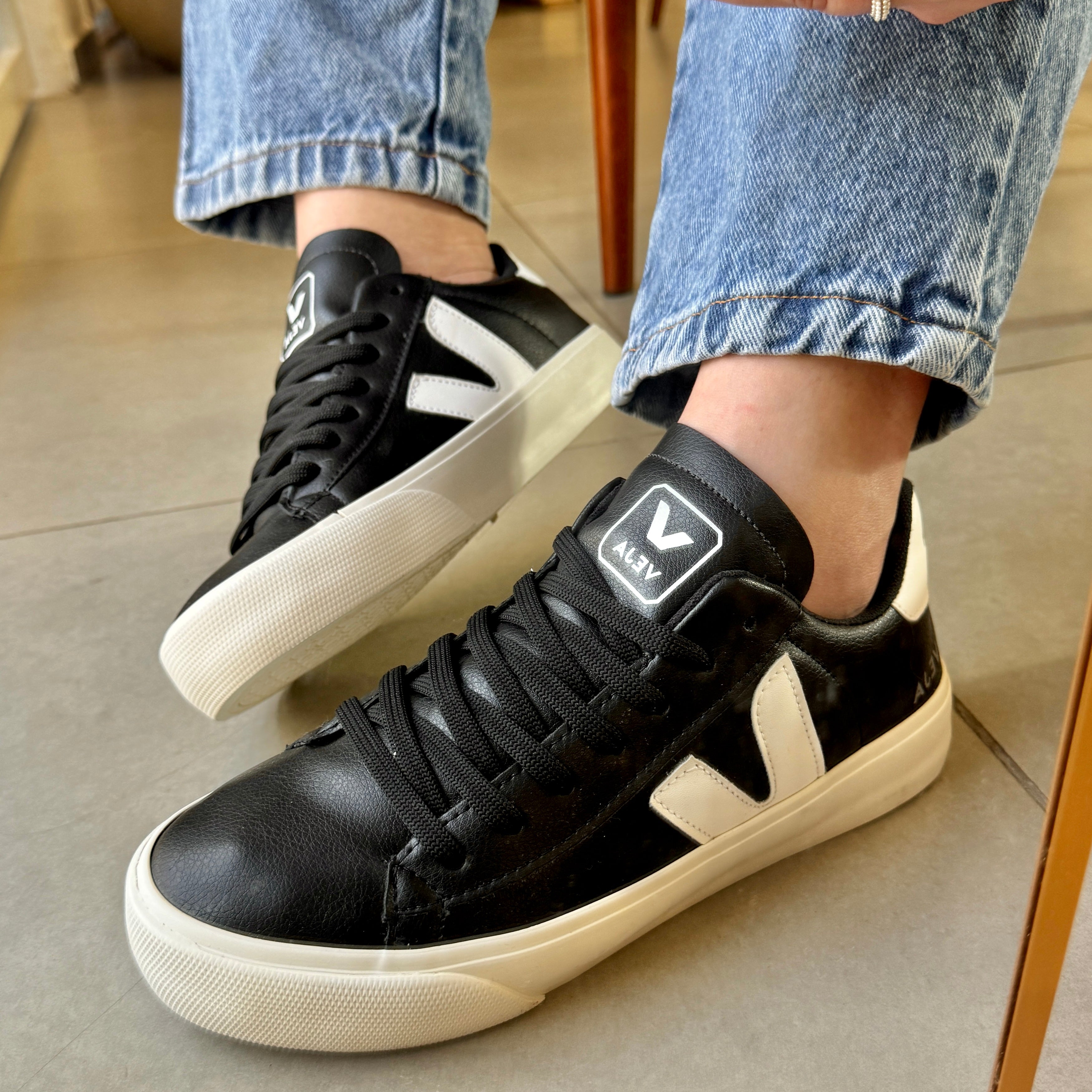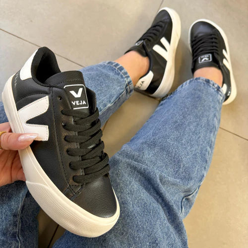 O Tênis Cadarço Preto e Branco é o exemplo perfeito de estilo, conforto e sustentabilidade . Com seu design minimalista e sofisticado, este modelo se tornou um "ícone entre as fashionistas" que busca algo exclusivo e exclusivo em seus looks.
