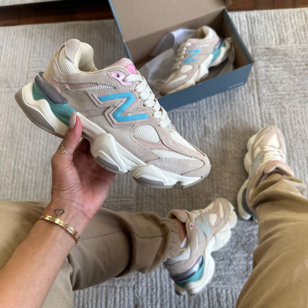 Descubra o Tênis New Balance 9060 Sea Salt GreyBlue Couro Legítimo, uma verdadeira obra-prima em estilo e conforto. Feito com malha, camurça e couro 100% legítimo, este tênis oferece uma experiência única para o seu dia-a-dia . A versão colorway deste modelo apresenta uma paleta de cores vibrantes, incluindo tons de nude, azul bebê, rosa com detalhes em verde água.