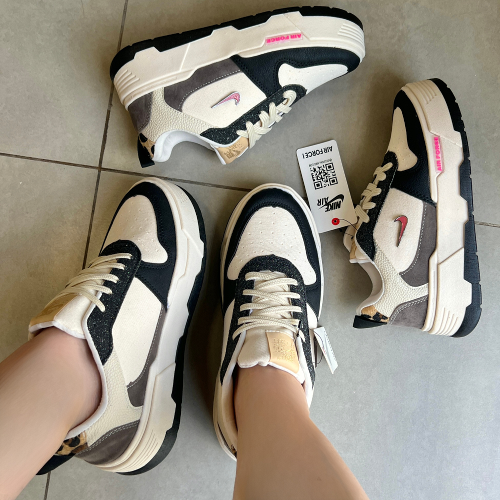 O TĂȘnis Nike AF1 Plataforma Preto Premium apresenta um design Ășnico, combinando lona de alta qualidade com detalhes em couro na cor preta e camurça. Esta combinação de materiais cria um visual deslumbrante que se destaca em qualquer ocasiĂŁo.