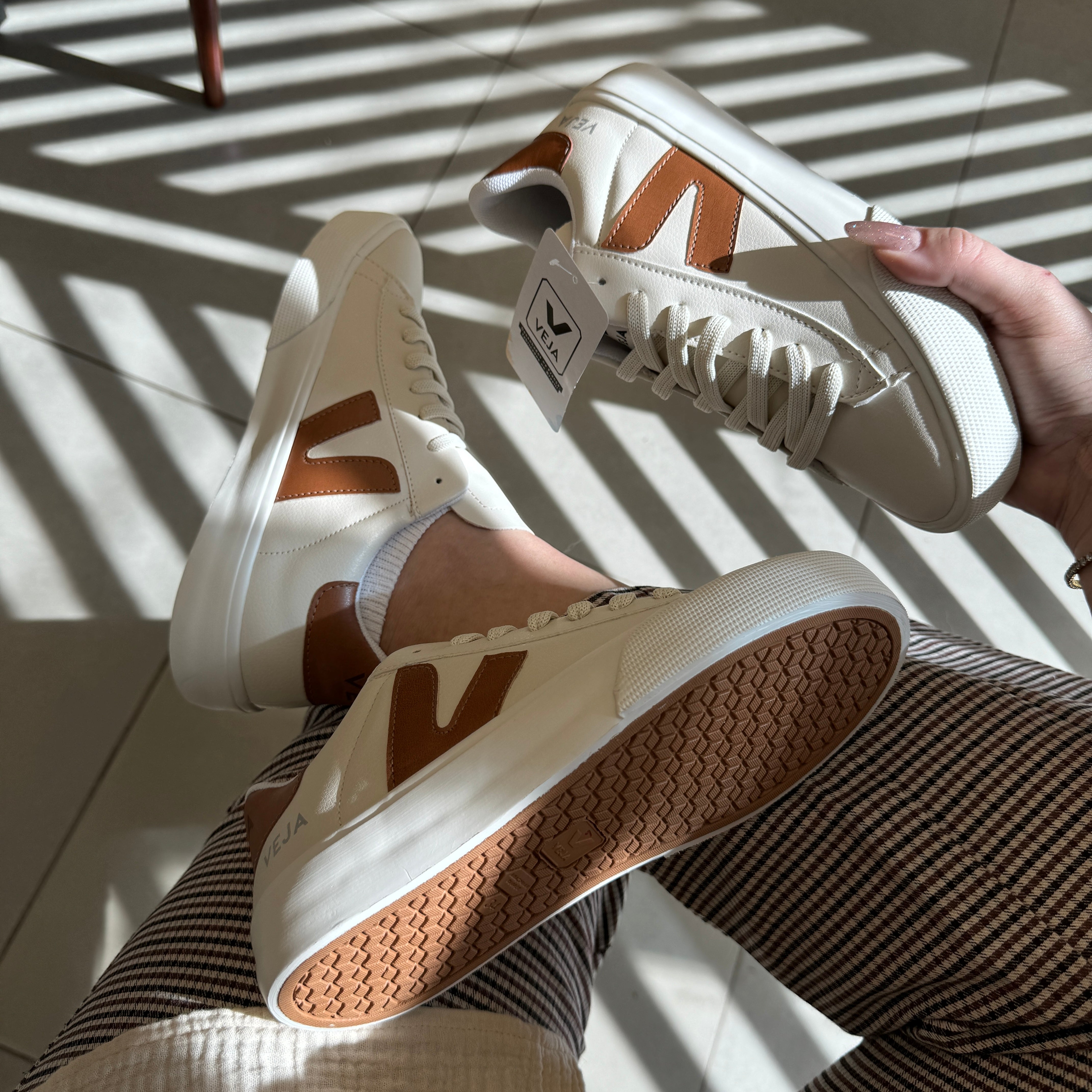 O Tênis Cadarço Caramelo Off White Premium se destaca por seu design minimalista e uso de materiais de altíssima qualidade e sustentáveis. Este modelo combina a moda das cores branco e bege com a responsabilidade ambiental, ideal para quem busca estilo sem comprometer os valores ecológicos.