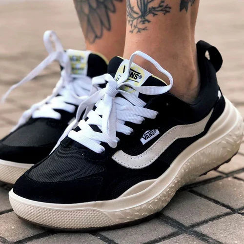 O solado Waffles, característico dos tênis Vans, é conhecido por sua excelente tração e durabilidade. Este design proporciona estabilidade e segurança ao caminhar, sendo perfeito para quem procura um tênis versátil para diferentes tipos de superfícies.